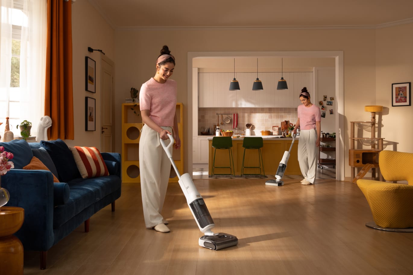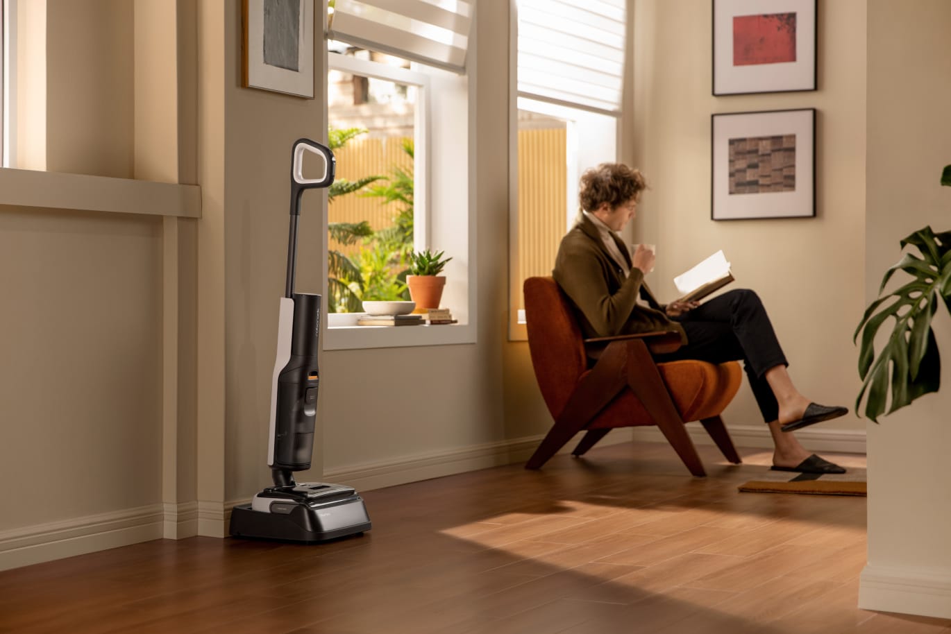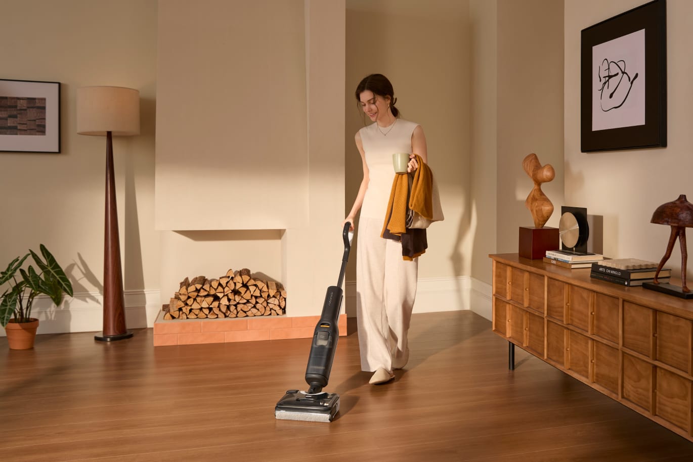 Enhanced with a low water tank and 70° swivel design, it lets you glide effortlessly around furniture and obstacles, delivering a smoother, more efficient clean.