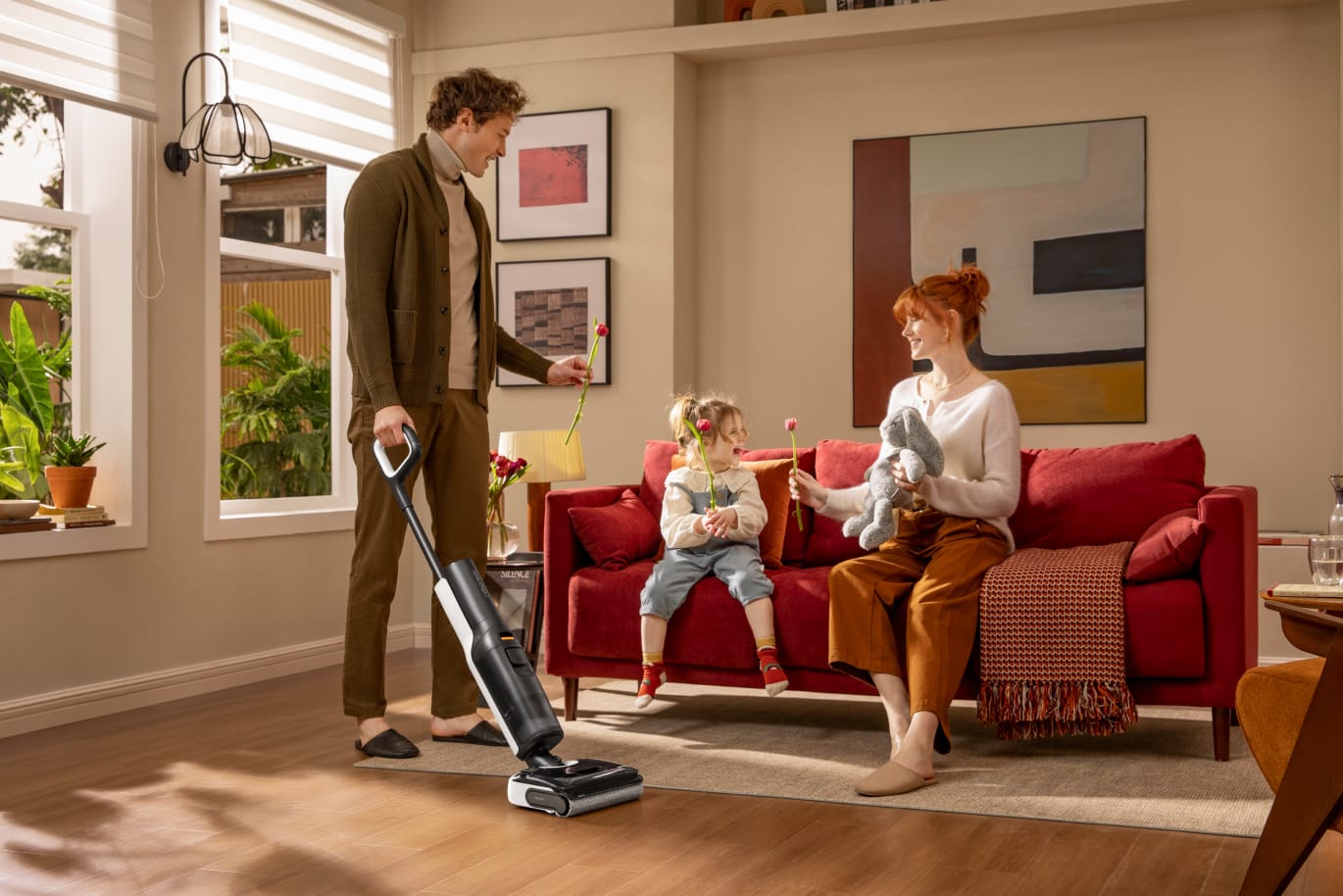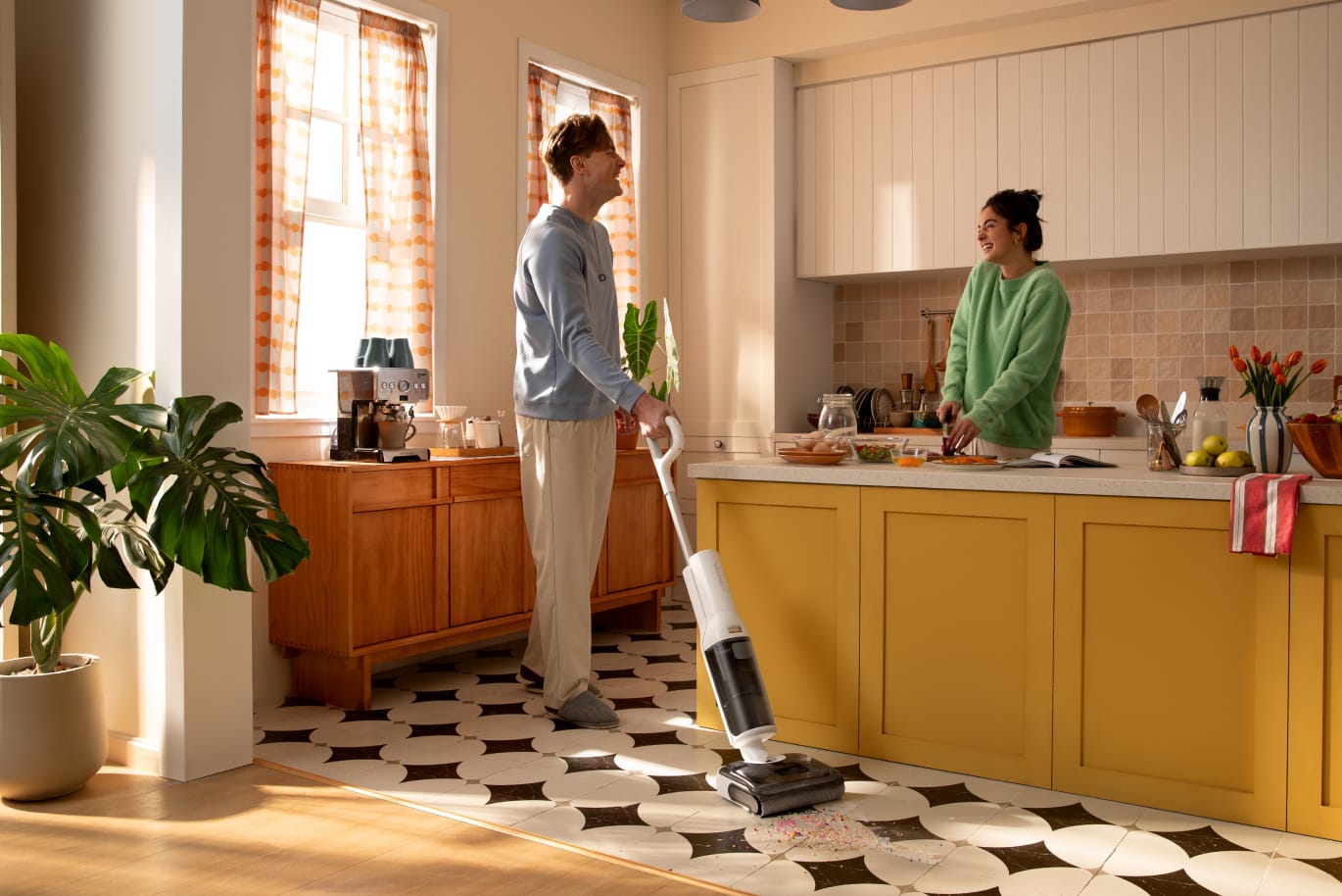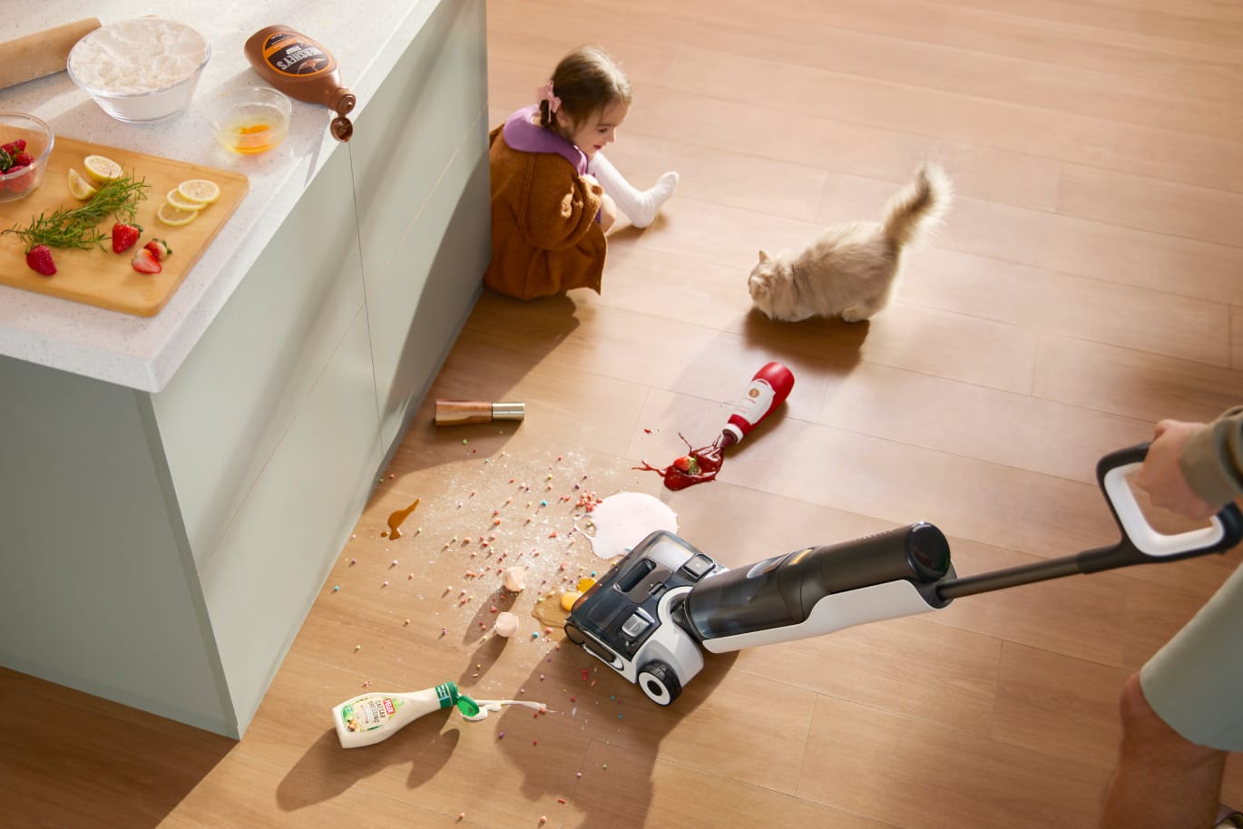 Enhanced with a low water tank and 70° swivel design, it lets you glide effortlessly around furniture and obstacles, delivering a smoother, more efficient clean.