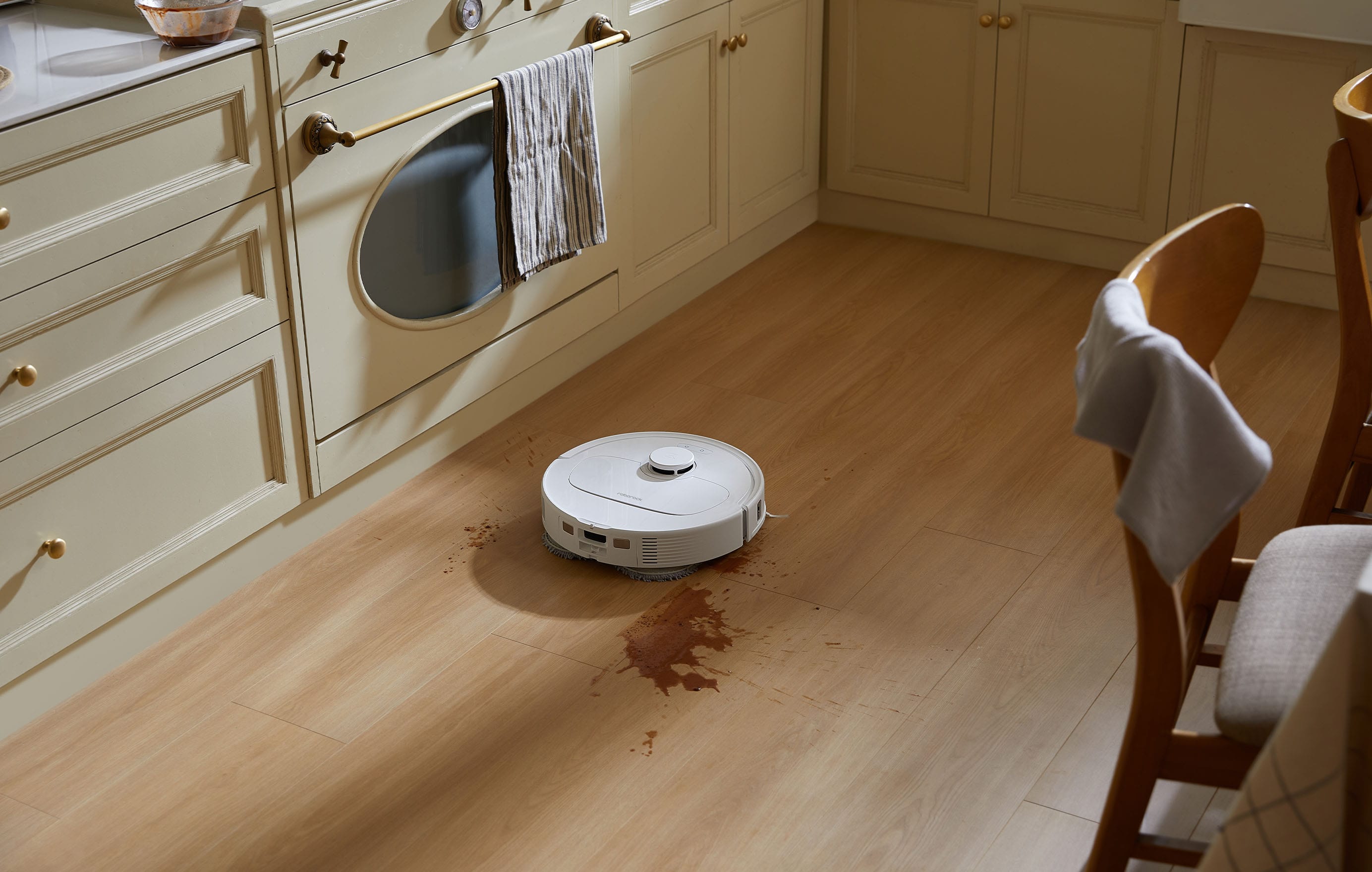 With dual liftable spinning mops, Roborock Qrevo S is designed to tackle stubborn stains as if you were mopping by yourself, whether it's smooth tiles or rough surfaces.