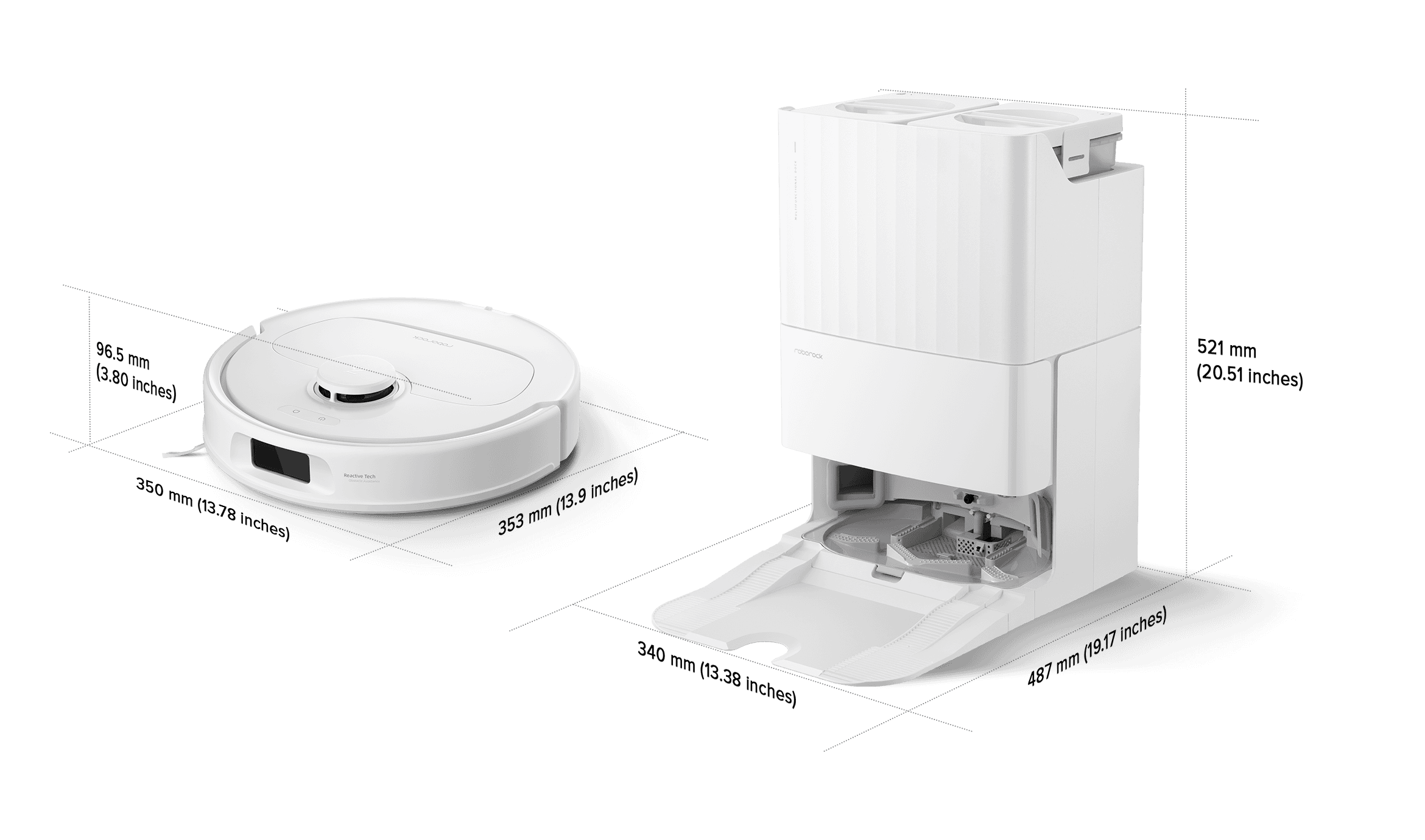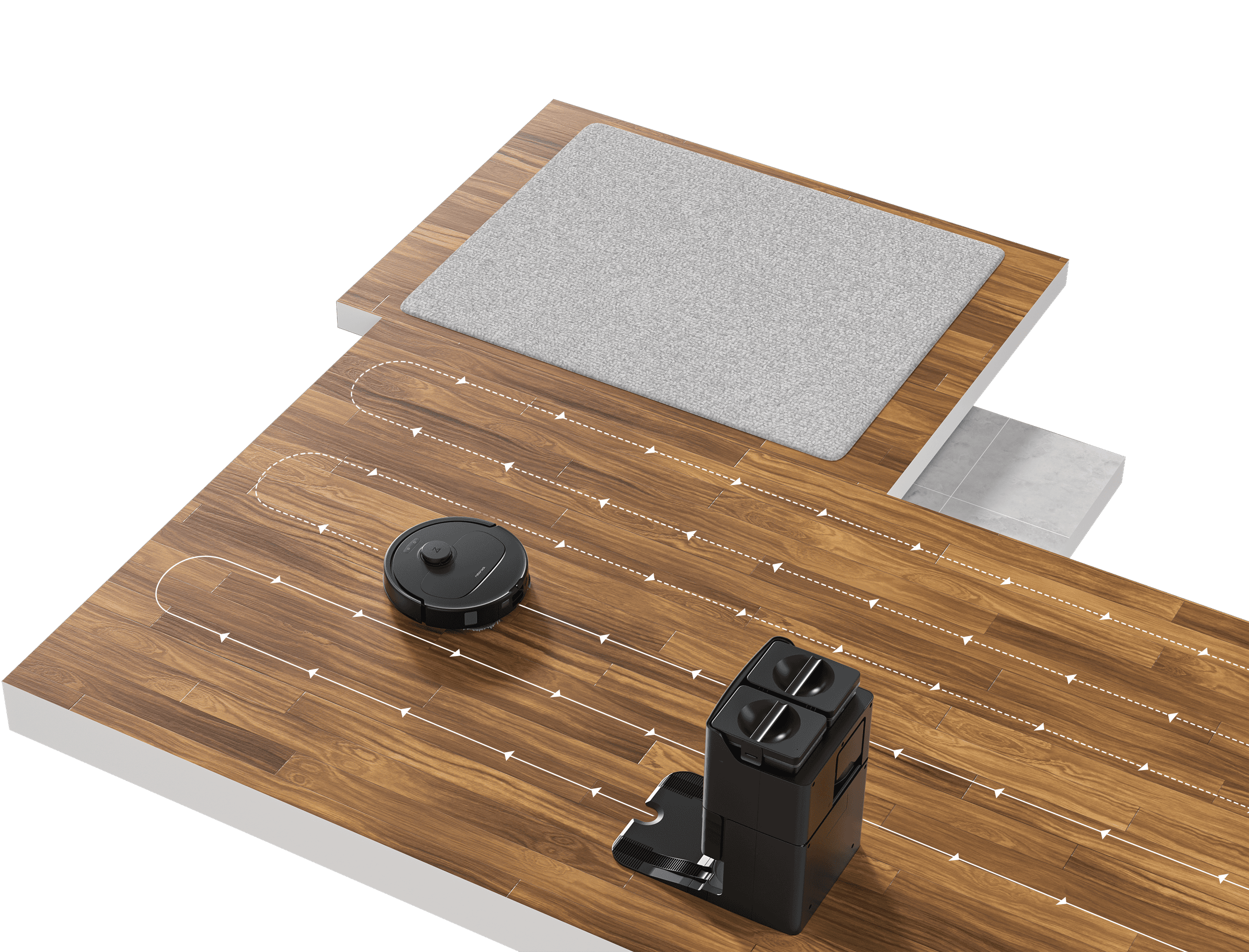 5. Based on Roborock internal testing with a full clean water tank in the dock. Mopping mode is set to default. Actual results may vary depending on environmental conditions.