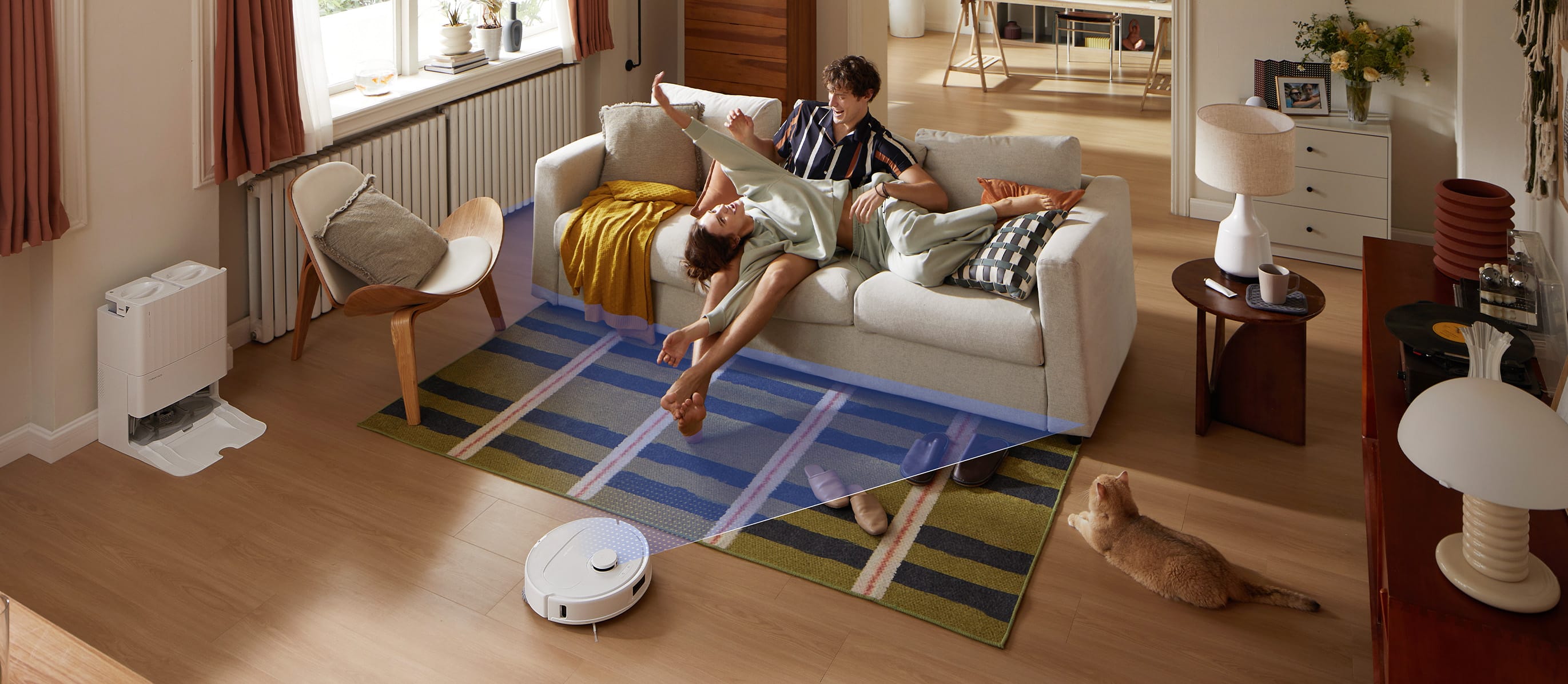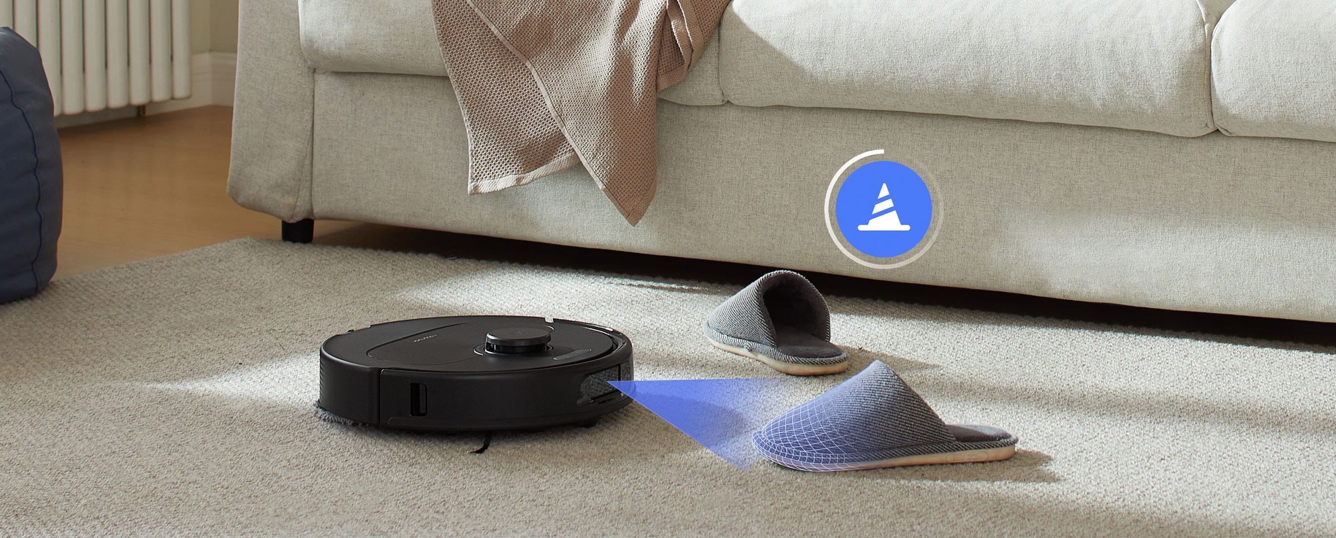 Powered by structured light, the Roborock Qrevo S is ready to detect and navigate around obstacles effortlessly, even in cluttered rooms with items scattered on the floor.