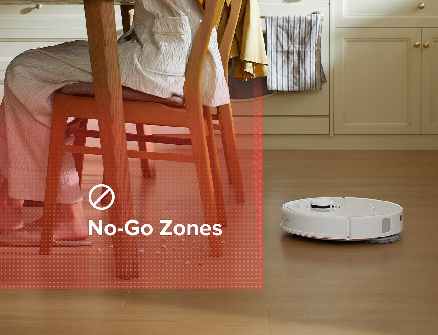 For easy-to-get-stuck places like below chairs and tables, the Roborock Qrevo S can detect and suggest them as 'No-Go Zones' to avoid getting stuck.